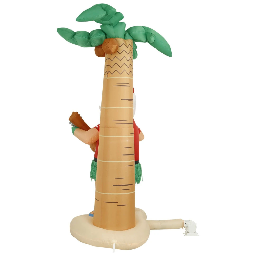 This fun Christmas decor depicts Santa Claus in a Hawaiian shirt and eyeglasses holding a guitar with a palm tree background. Talk about a way to spice up traditional Christmas displays! The inflatable towers at 8 feet high, making it a showstopper in any outdoor or indoor display spot. At night, it beams up with LED lighting that adds a festive glow to any garden, lawn, or indoor party venues.