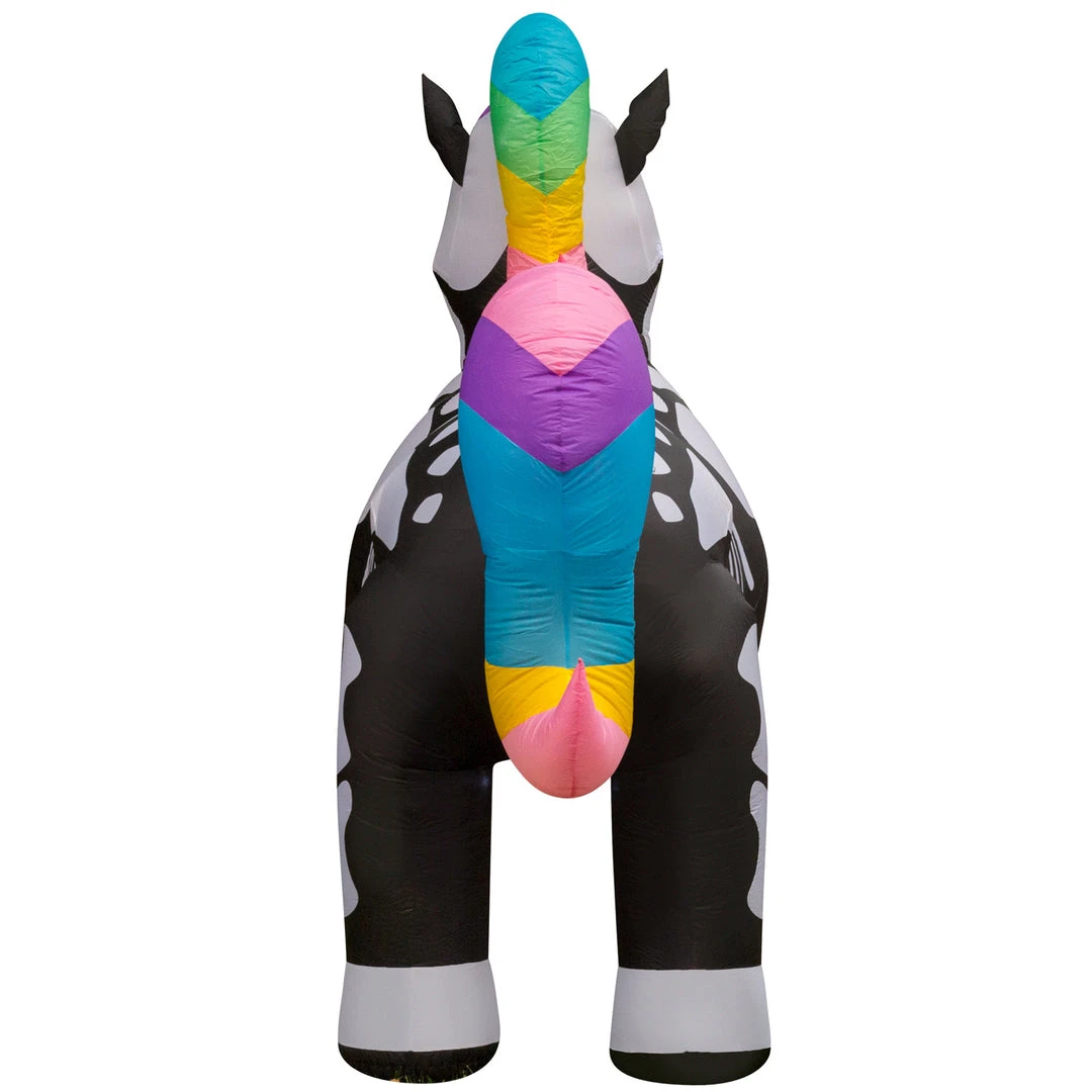 Welcome guests and trick-or-treaters with the lighted Skeleton Unicorn Inflatable. Designed with a rainbow mane and tail, it’s a Halloween decor that both kids and adults will enjoy.