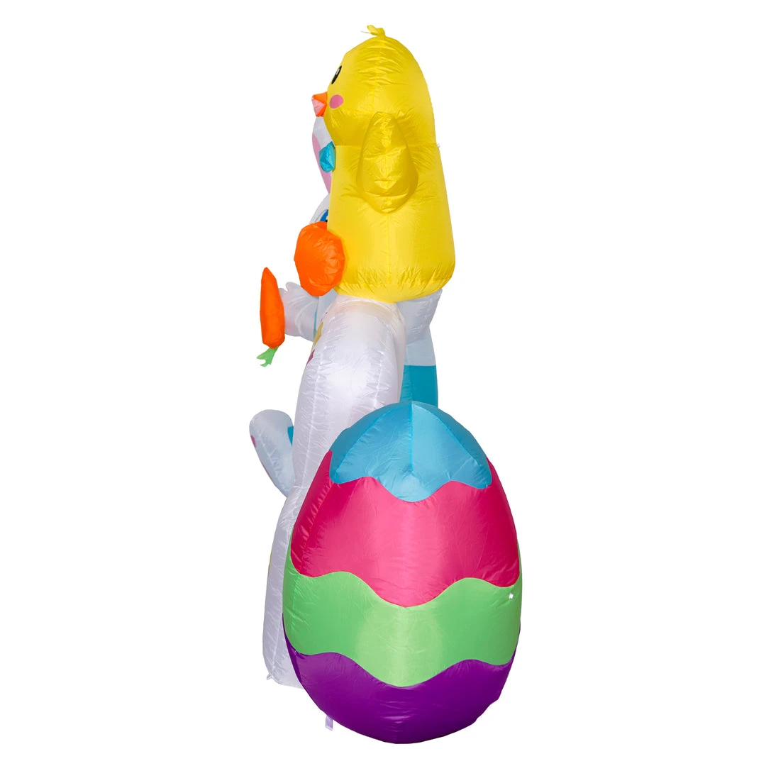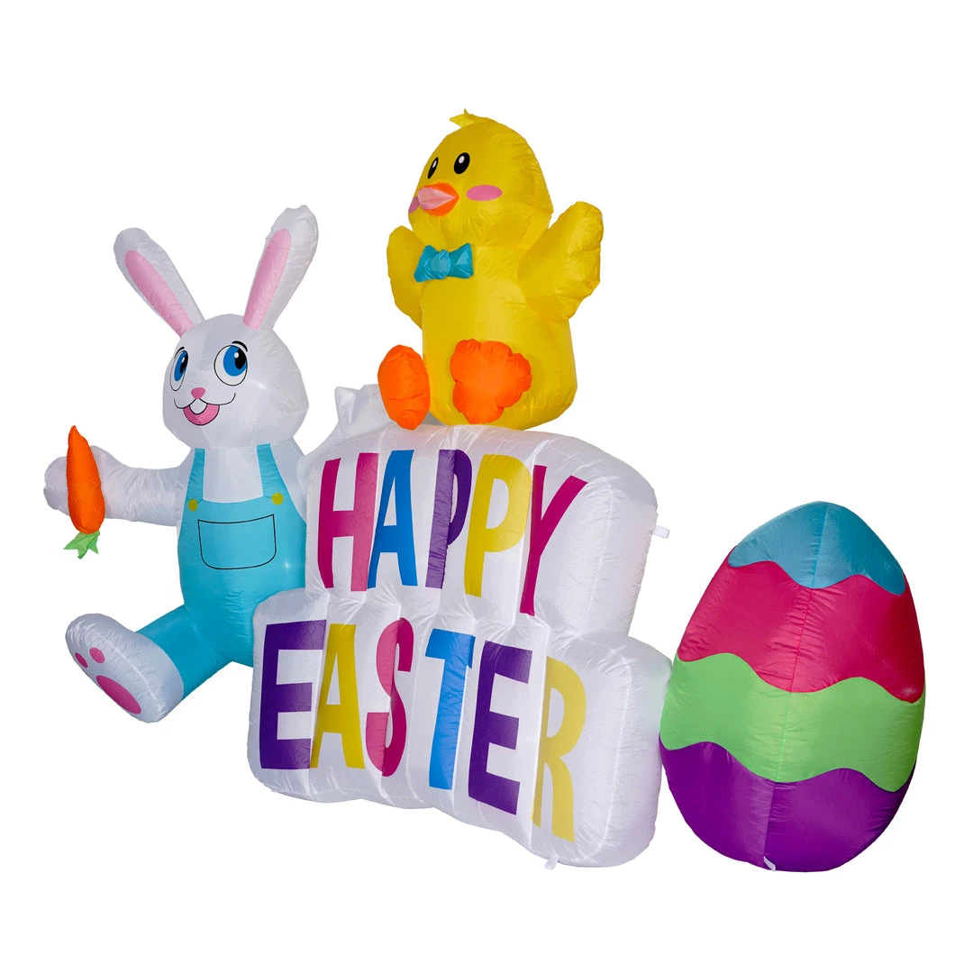 This 6ft Tall Happy Easter Sign with Easter Bunny Eggs and Chick Inflatable Outdoor Decor will make your spring holiday season even more vibrant! The phrase “Happy Easter” Is lit up bright and is accompanied by the Easter Bunny to the left, Easter eggs to the right and an adorable chick sitting on top. With the well-placed and extra bright built-in LED bulbs, it’s a showstopper at night to make for a stunning spring display!
