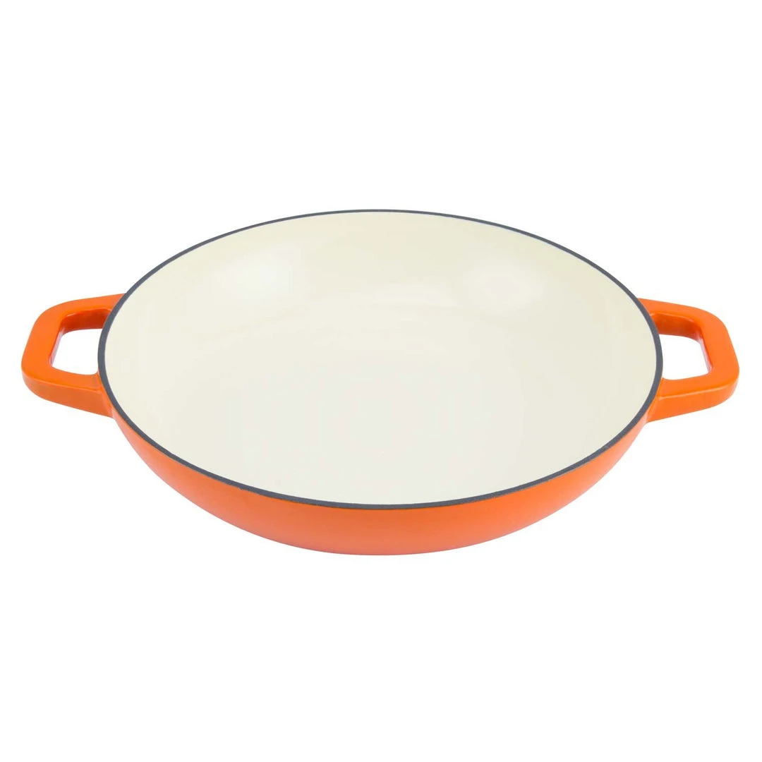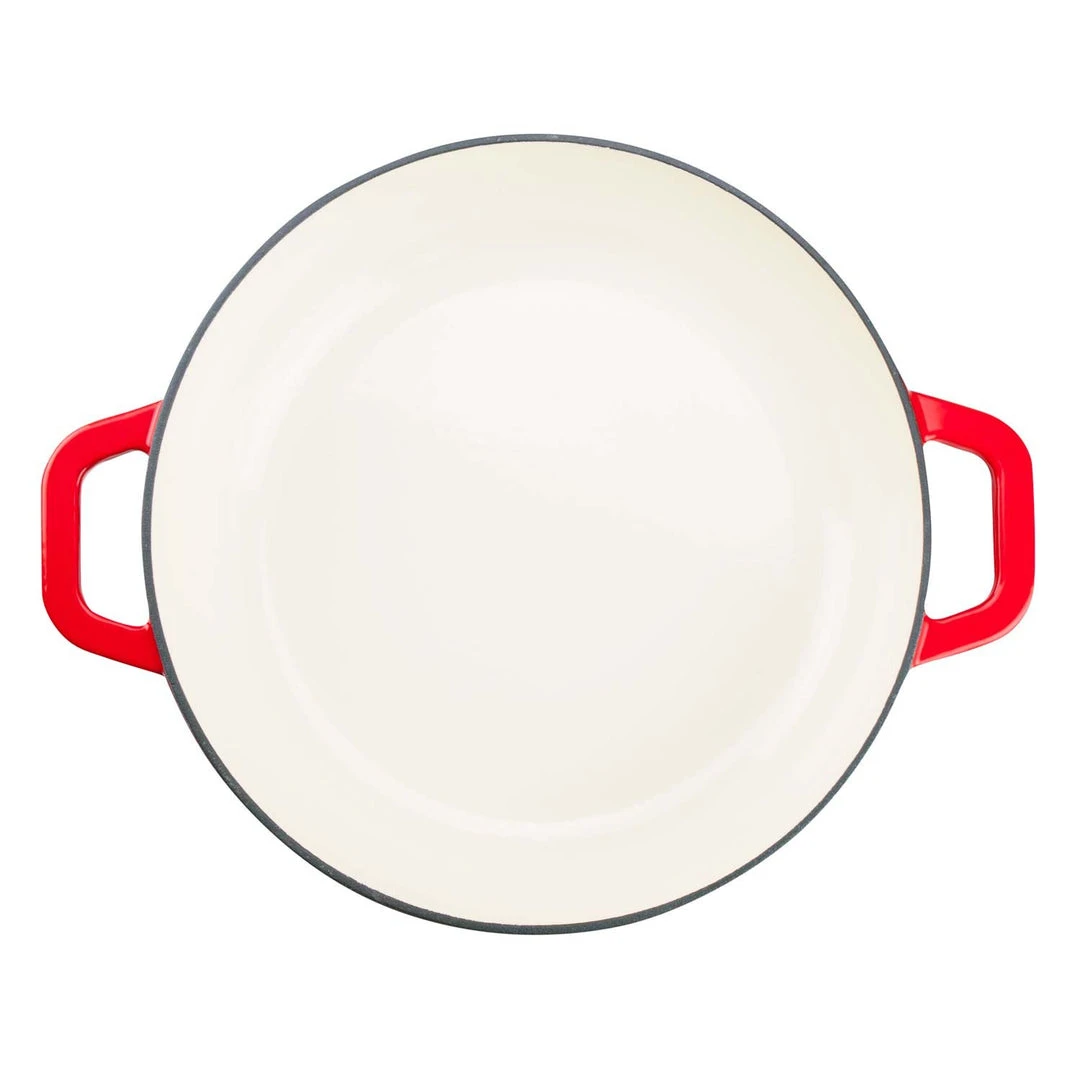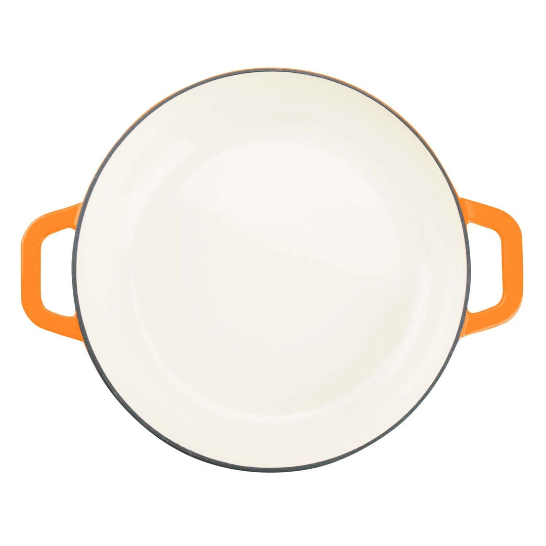 Create savory braised meat dishes, slow-cooked stews, tempting desserts, and comfort foods like noodle casseroles and au gratin potatoes. This versatile set includes a two-inch deep casserole dish and a matching cover. The tight-fitting lid seals in moisture and flavor, and has self-basting condensation bumps on the underside. Designed to withstand temperatures up to 500-degrees Fahrenheit, Zelancio cast iron enamel cookware can go from stovetop to oven to broiler. Vibrant, contemporary colors make the pieces attractive enough to use as servingware. Choose from red, orange, or teal. Heavy-duty cast iron material provides superior heat distribution and the durable porcelain enamel finish is chip resistant.